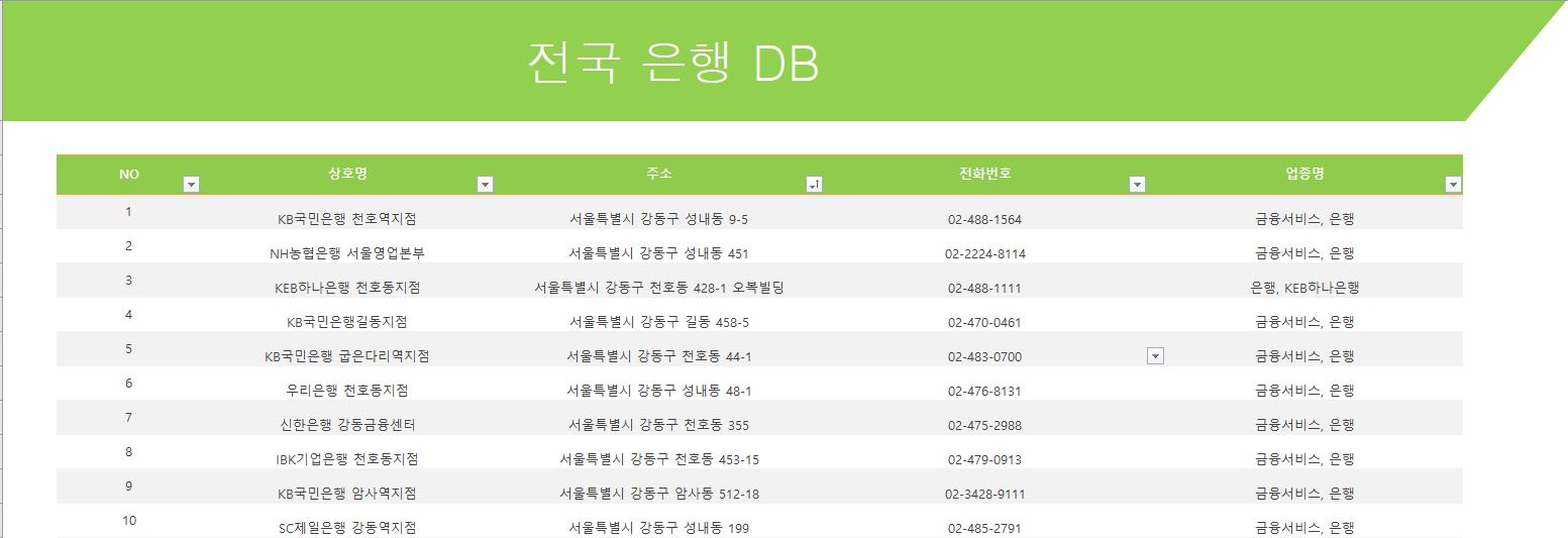 전국 등록 은행 DB