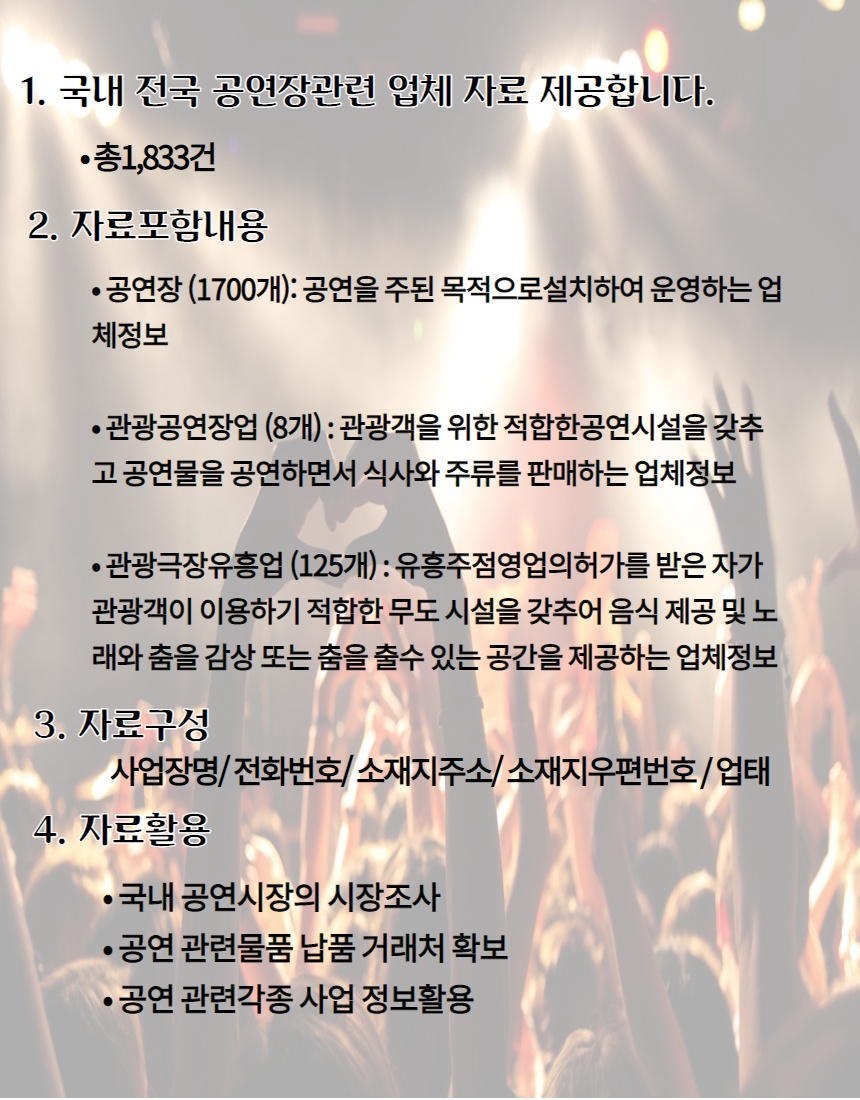 국내 공연장에 대한 DB 드립니다.