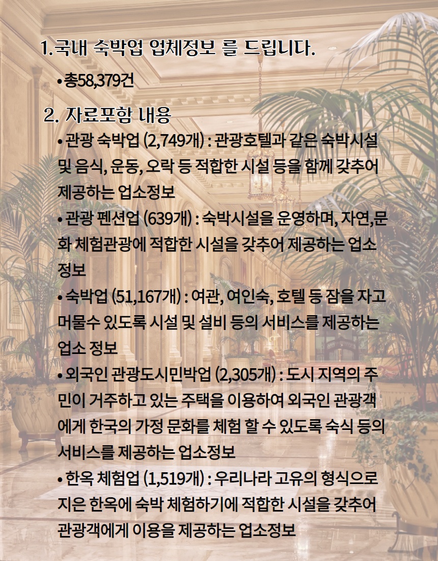 국내 숙박업체에 대한 DB 드립니다.